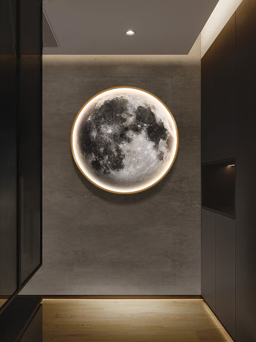 As an artistic piece itself, the moon-shaped LED wall light can complement other artworks and decorative items. For example, hanging abstract paintings or displaying sculptures around the light fixture can further emphasize the artistic ambiance of the space, creating a personalized and tasteful artistic home environment.