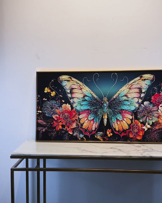 Colorful Butterfly Painting Crystal Porcelain Painting wall Decorative art LED