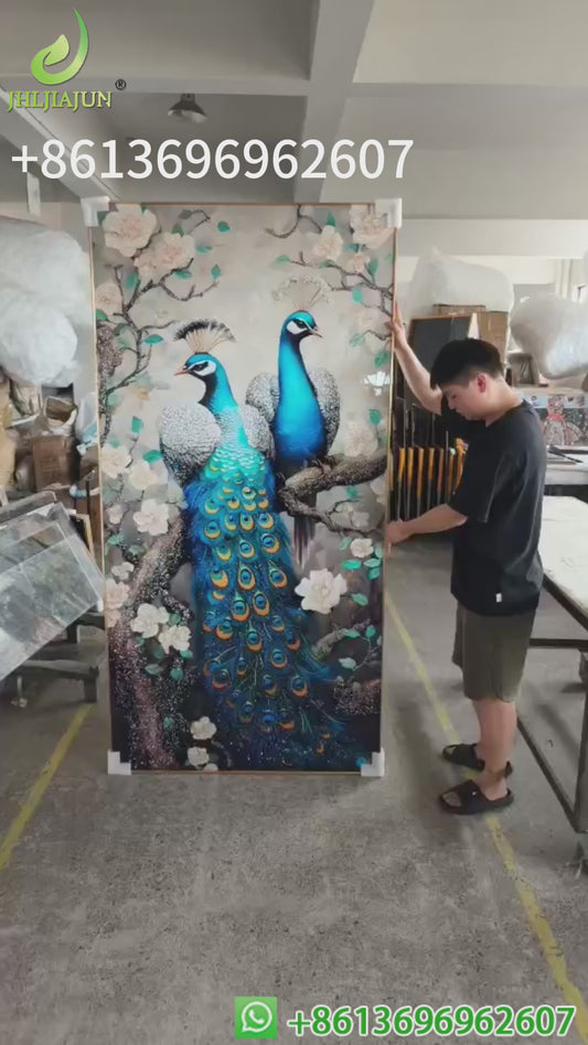 Abstract scene 3D Beautiful peacock home decorative crystal porcelain painting LED