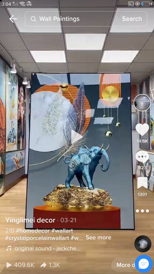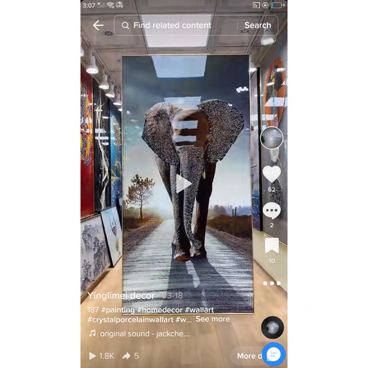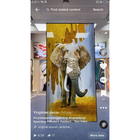 Nordic Elephant Animal Crystal Porcelain Wall Hanging Picture wallart.