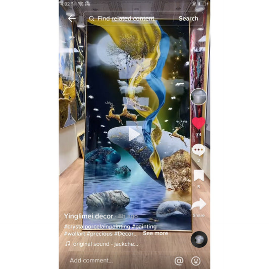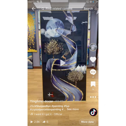 Abstract Golden Deers Crystal Porcelain decorative painting