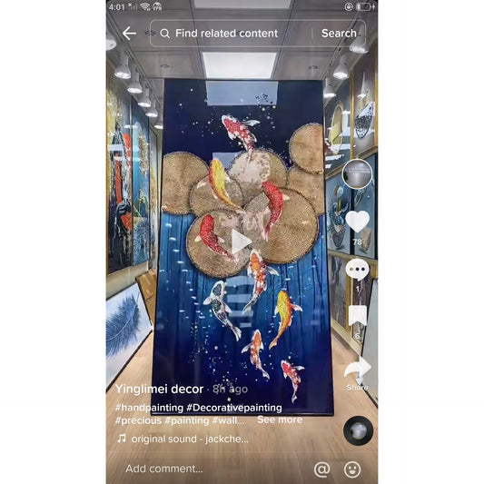 Lucky Ten Fish Picture Crystal Porcelain Painting Decorative .