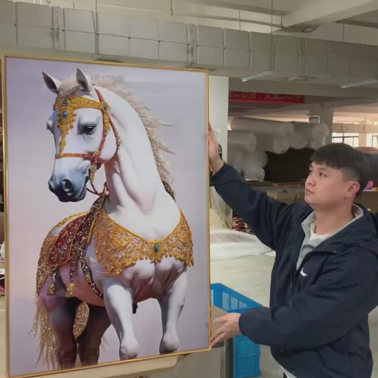 Modern white horse background wallart Crystal Porcelain Painting Decorative LED