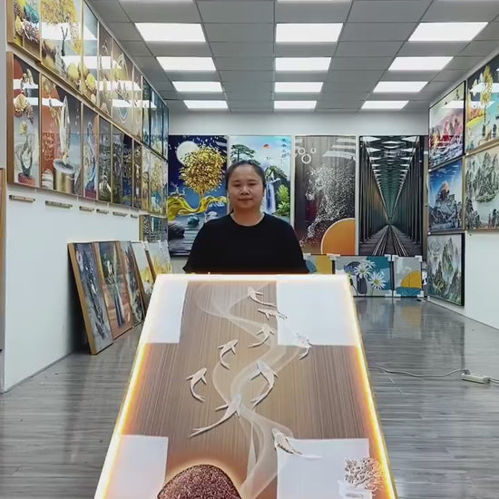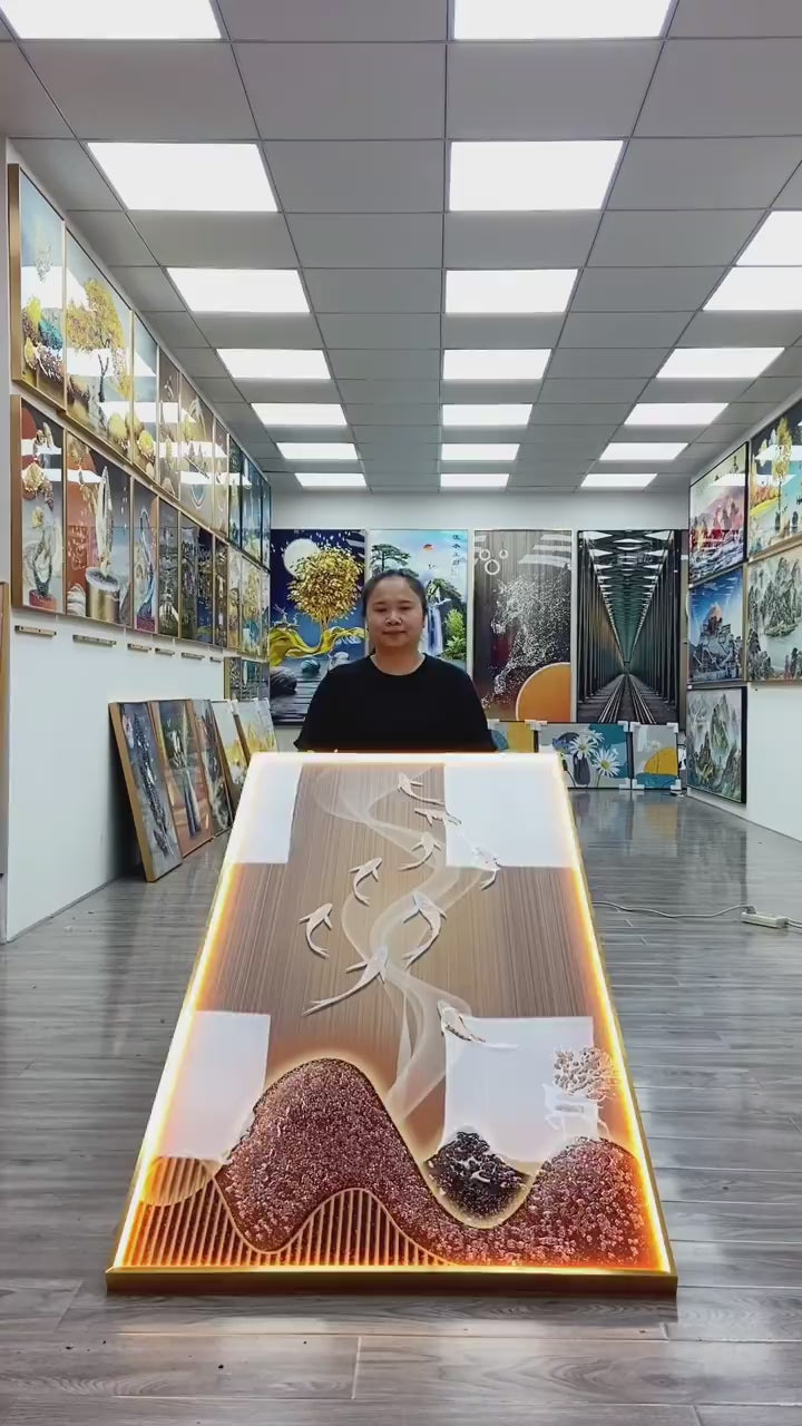 Lucky Fishes Picture print LED lamp Crystal Porcelain Painting Decorative .