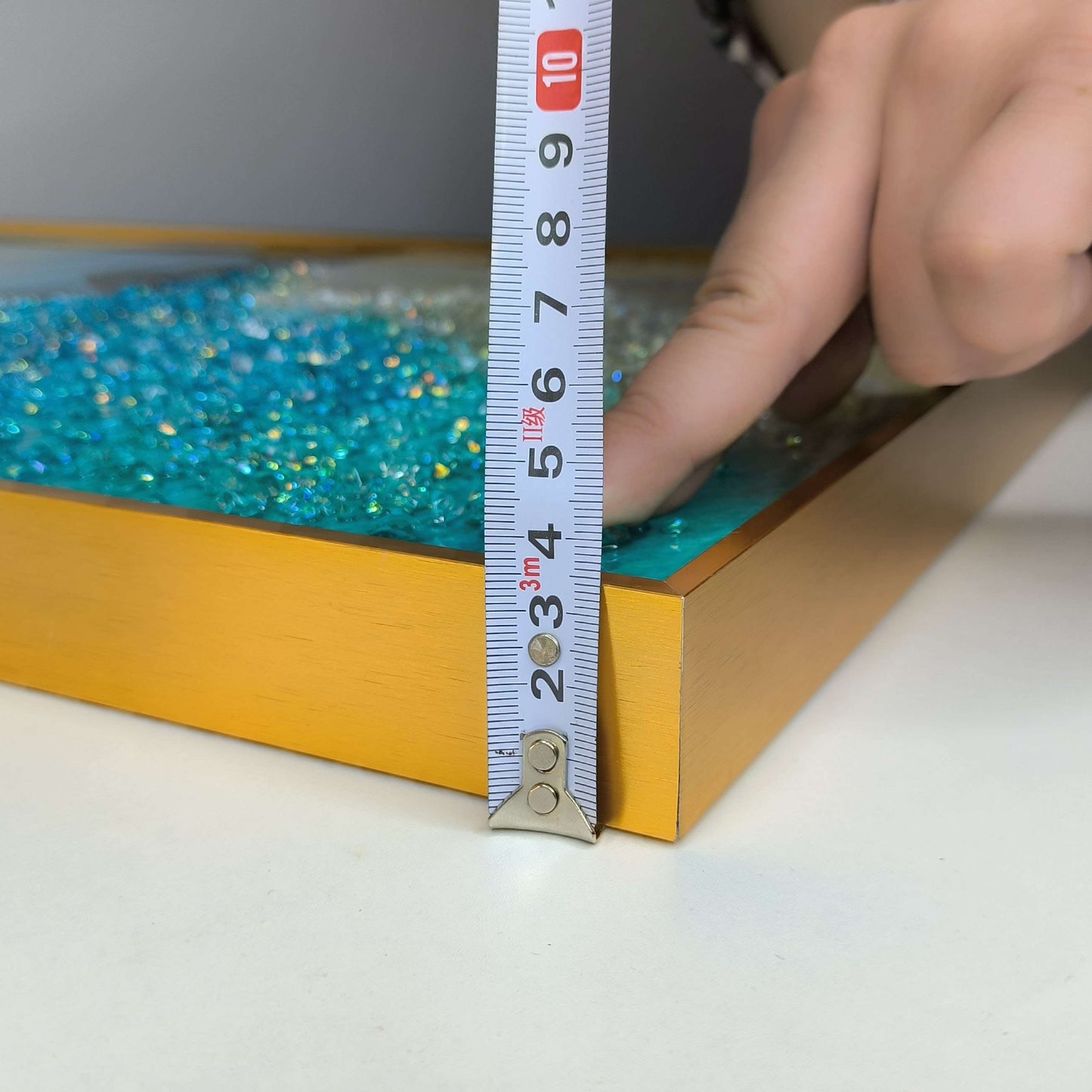 All of our art paintings are framed in aluminum. It has a brushed metal surface texture. This material makes the painting lighter and easier to hang.