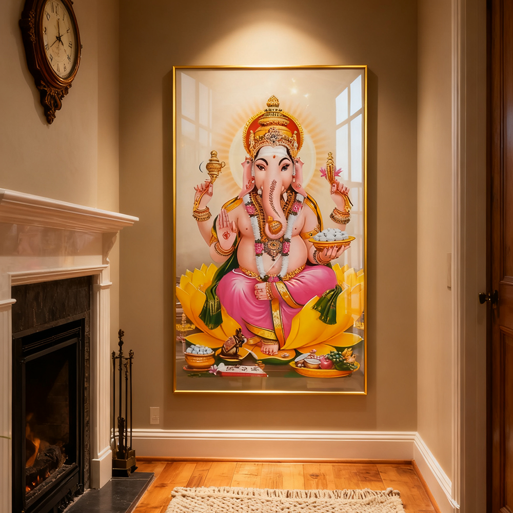 The Buddha sits in tranquility wall Crystal Porcelain Painting Decorative art LED
