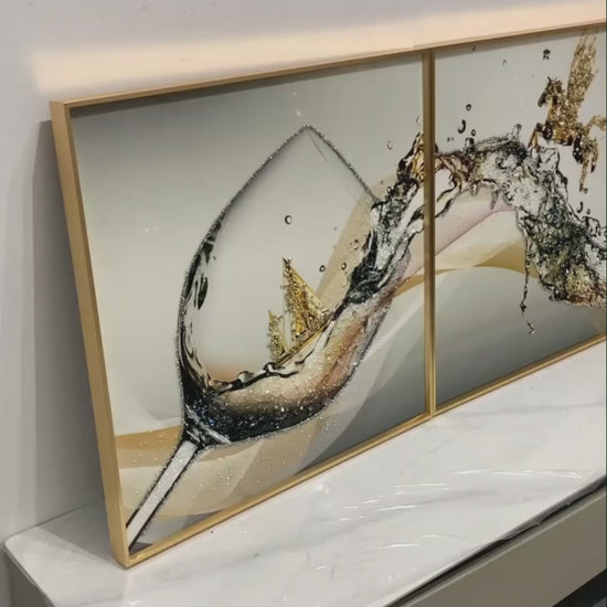 All of our art paintings are framed in aluminum. It has a brushed metal surface texture. This material makes the painting lighter and easier to hang.