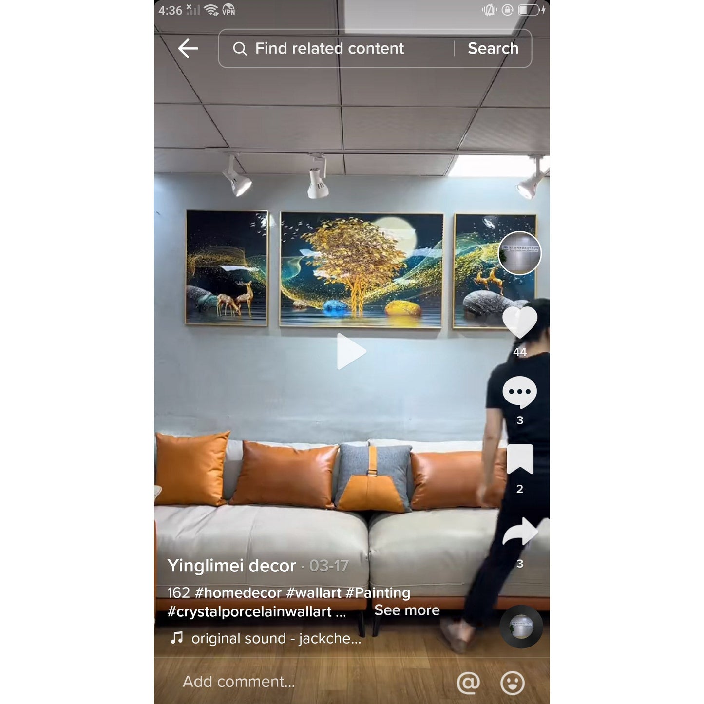 3in1 Abstract Auspicious Golden Deer Crystal Porcelain Decorative Wall Painting