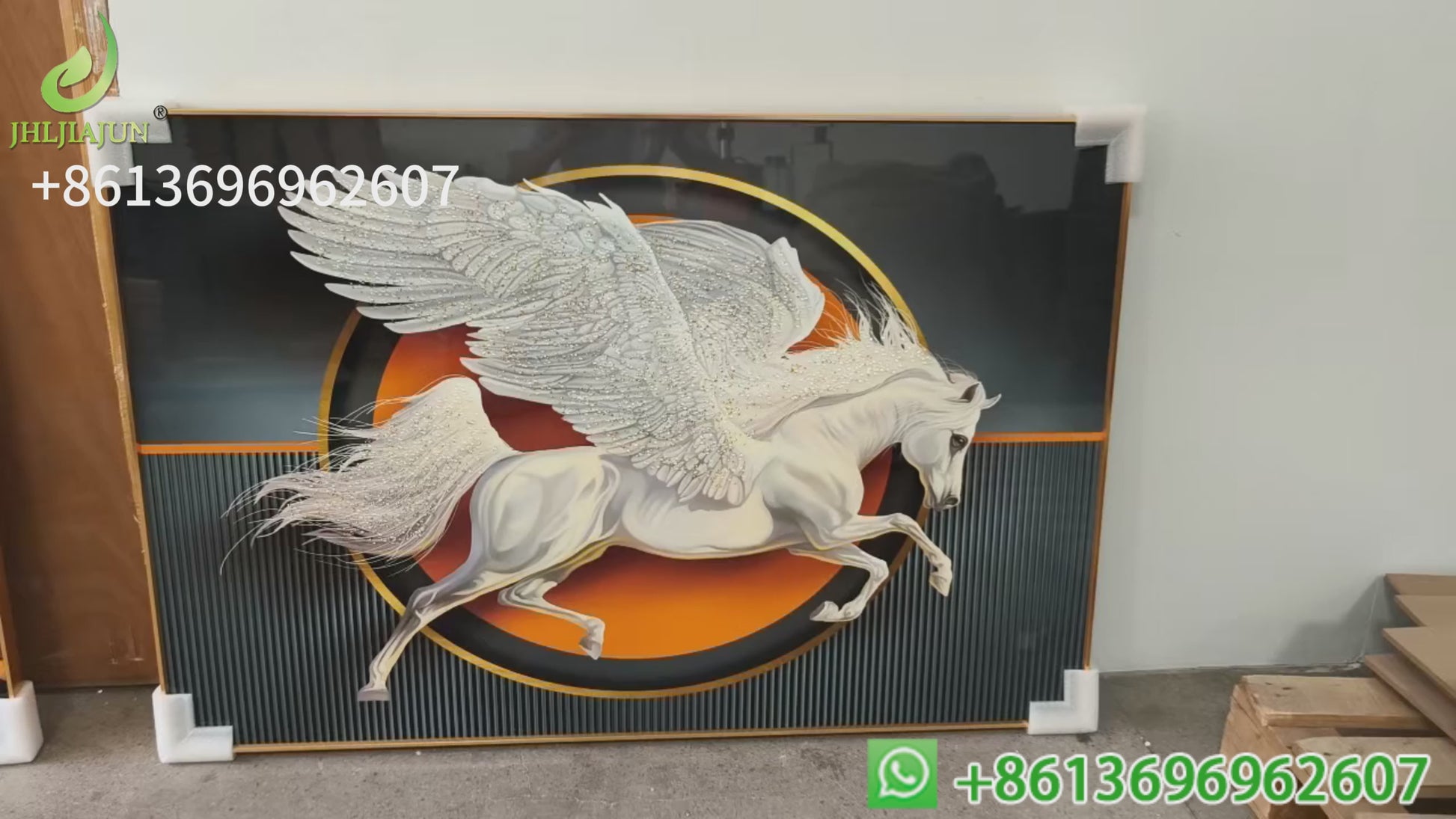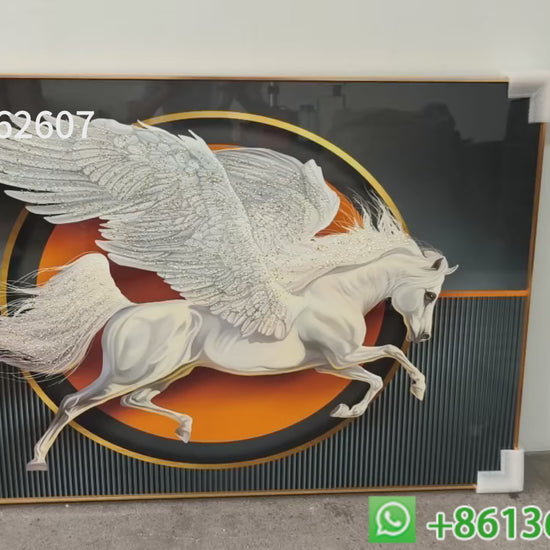 Abstract White Horse with Wings Crystal Porcelain Painting feather Wallart