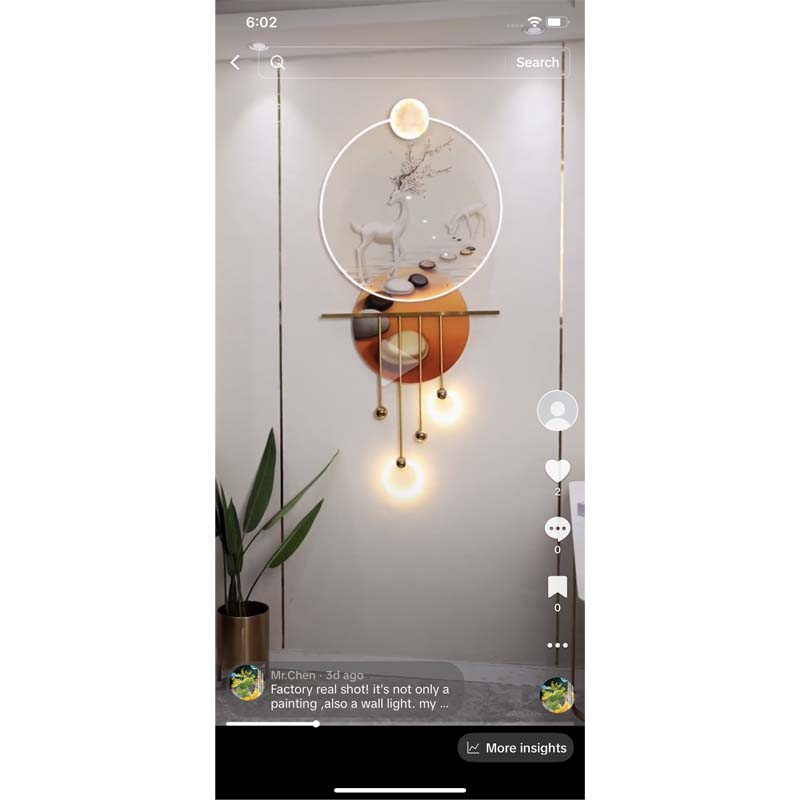 Abstract scene deers and moon 3D decorative murals hanging LED