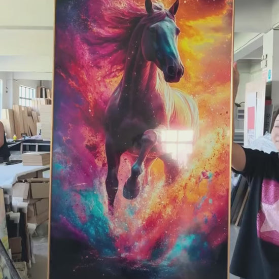 Beautiful Landscape Black Horse Crystal Porcelain Painting Decorative art LED