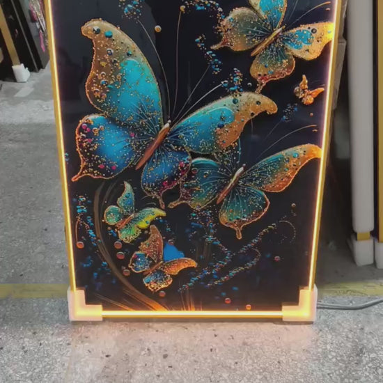 Luxurious Butterfly Crystal Porcelain Painting Wall Decorative LED Painting