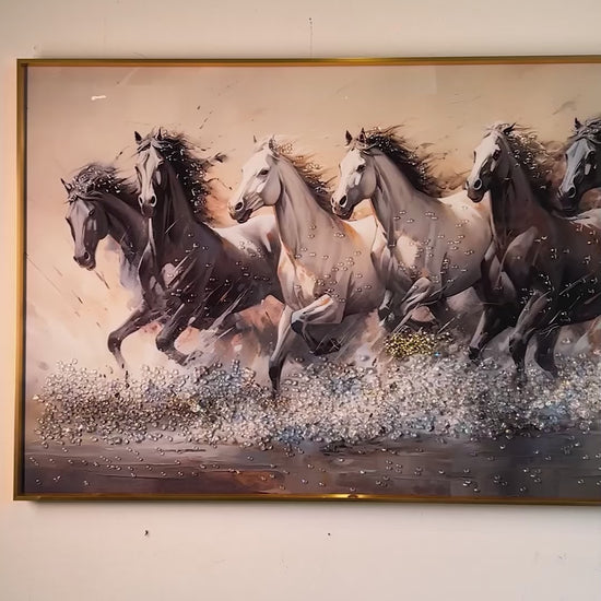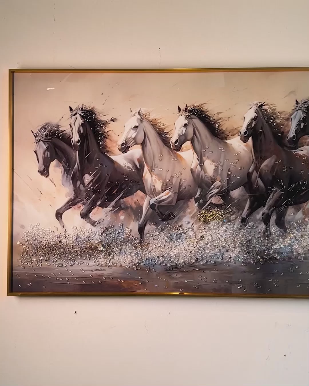 All of our art paintings are framed in aluminum. It has a brushed metal surface texture. This material makes the painting lighter and easier to hang.